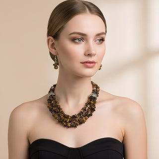 Discover our collection of handcrafted beaded necklaces, each featuring genuine natural gemstones in rich earth tones. from bold statement layers to delicate single strands, every piece is uniquely made - no two are ever the same. Wear the beauty of nature, effortlessly.