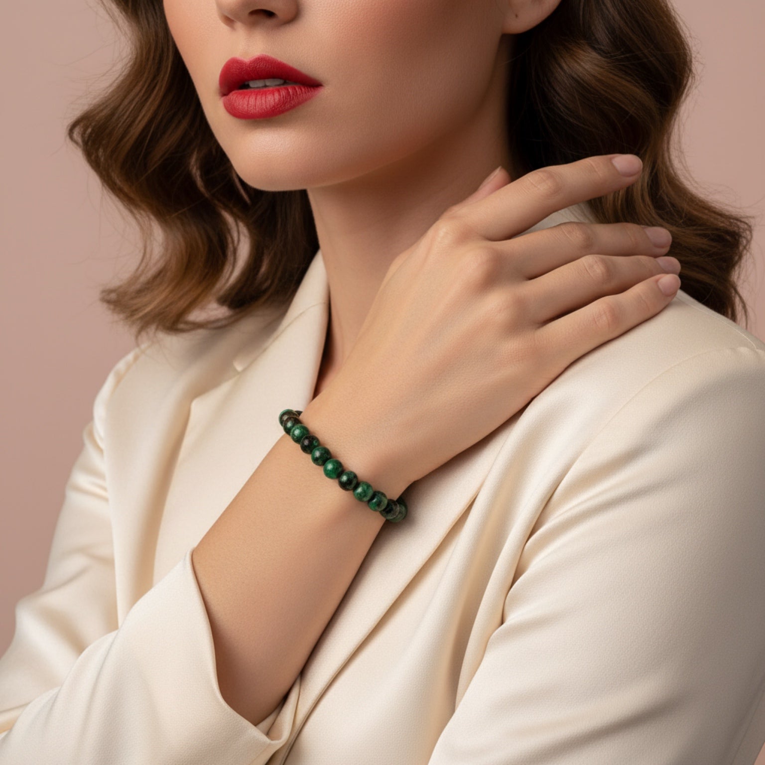 Deep green agate with a rich, refined finish.